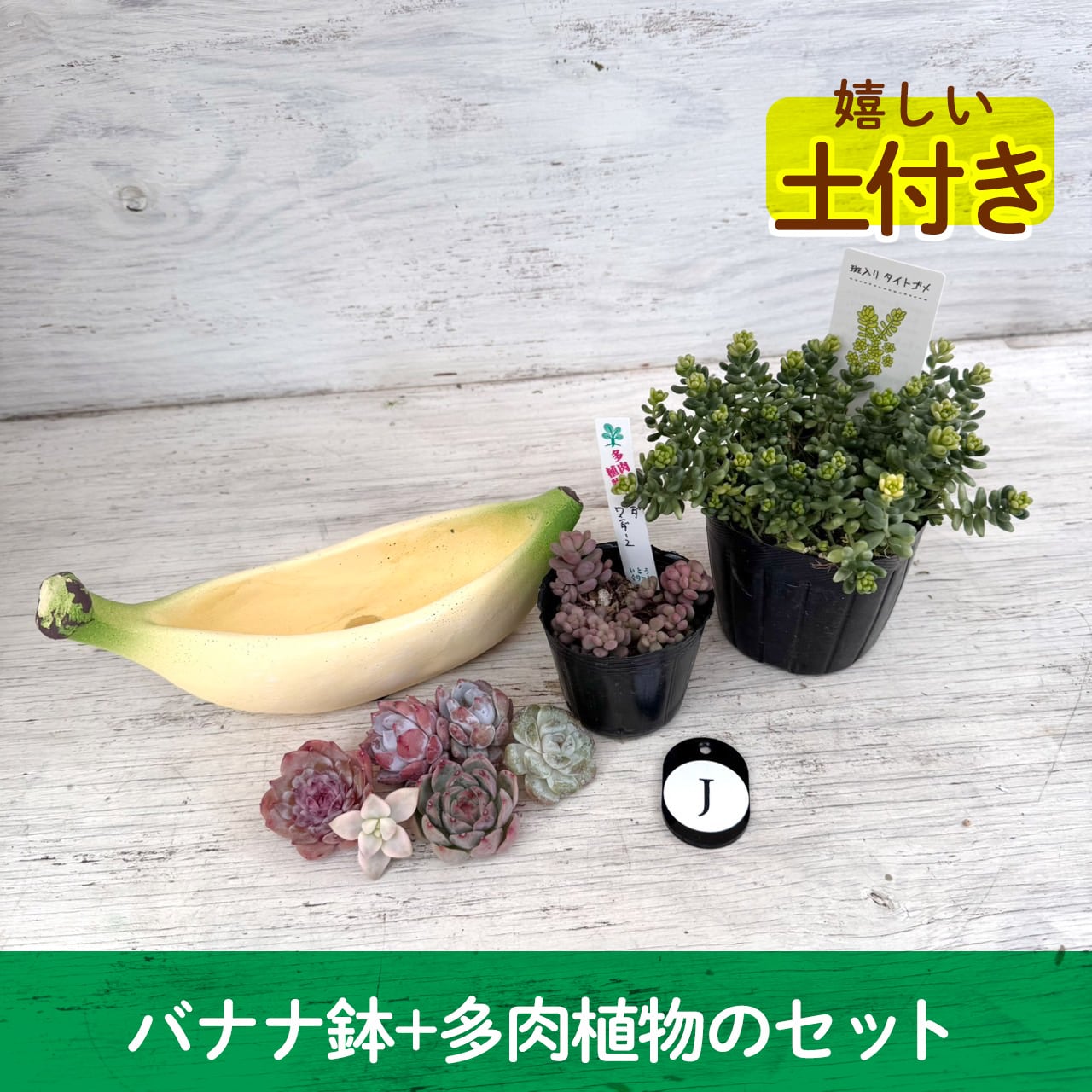 【寄せ植えセット】バナナ鉢&多肉セット"J" 多肉植物,かわいい,おしゃれ,寄せ植え