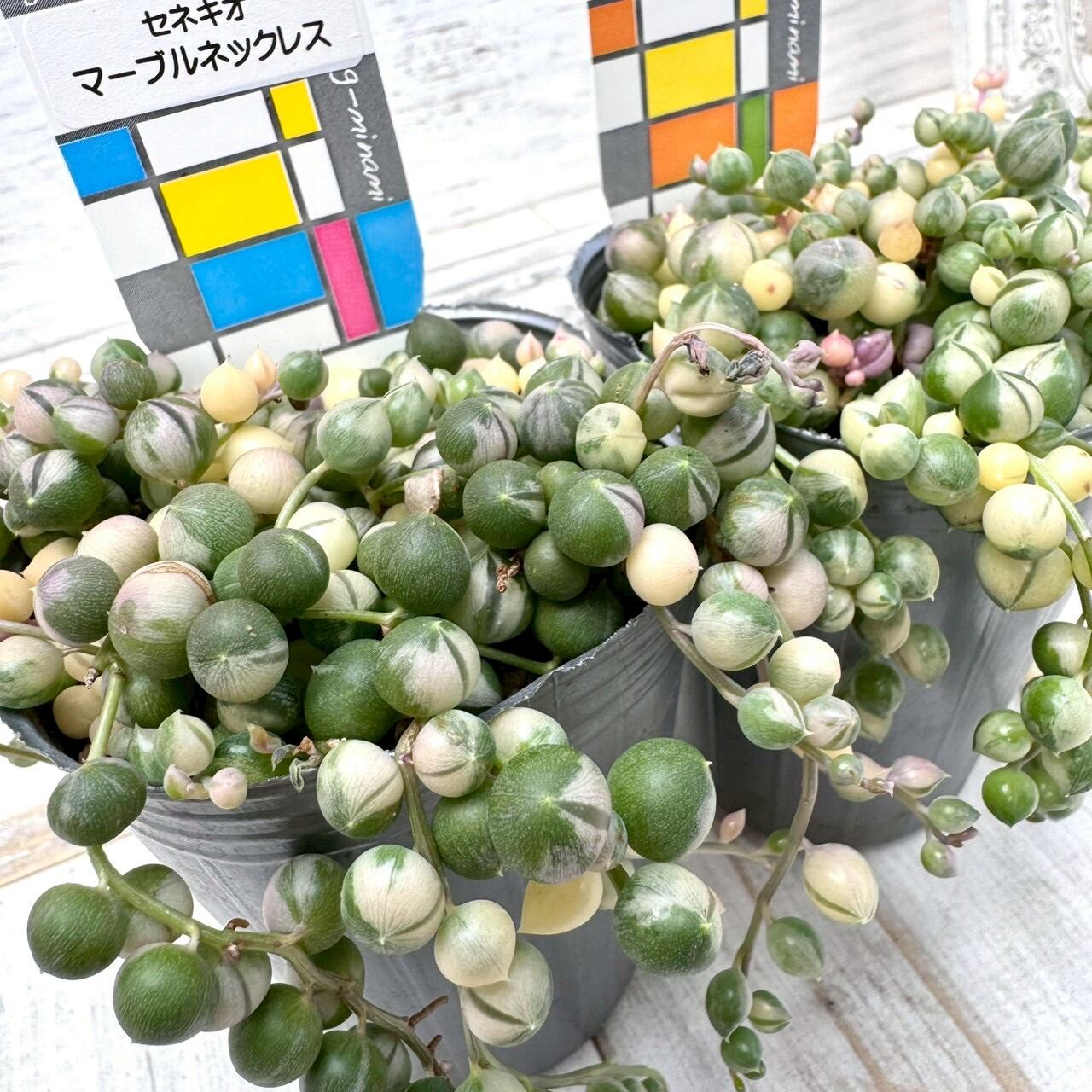 グリーンネックレスの斑入り。寄せ植えに入れるとエレガントな雰囲気に。人気種です!