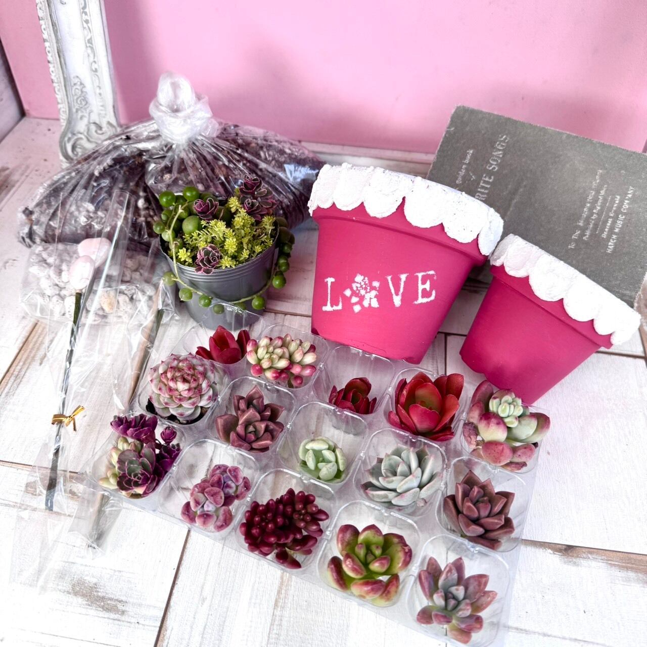 今回はそちらの鉢に似合う多肉植物もセットになっています。